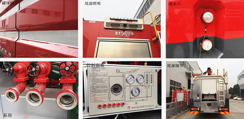駕駛室頂部前端為長排警燈,車身后配有24V/60W火場照明燈一只,車輛兩側(cè)上方各配有紅藍(lán)相配的爆閃燈,下方安裝安全標(biāo)志燈,乘員室、器材箱、 泵房內(nèi)均裝有照明燈,加裝有100W警報器,回轉(zhuǎn)警燈開關(guān)、通訊設(shè)備預(yù)備接口。