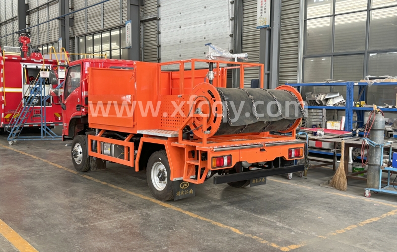 東風華神T5抑塵車等車型明確將推火鏟與滅火毯集成于后部作業(yè)平臺,作為核心滅火組件。