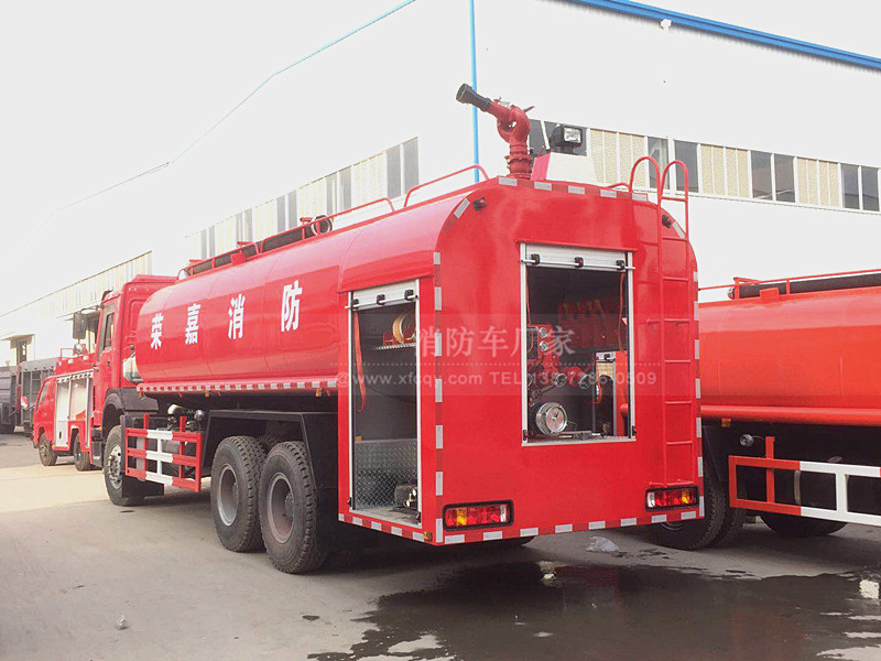 今天。我們就重點介紹下這位選手、當然、它還是采用的重汽豪沃340馬力的底盤、動力強勁自然不用多說、整車的噸位也是不在活下、采用的是豪沃后雙橋的底盤、輕輕松松應對各種路況或者水源不足的區(qū)域;也可以用來當做運水補給車使用、全車罐體一次性焊接而成、整車管道系統(tǒng)也是精干布局、杜絕了各種管道炸裂的后顧之憂、就算是嚴寒的冬季、在嚴寒天氣也無所畏懼、尾部泵房我們配備的消防泵燃油加裝系統(tǒng)、可以快速的將結冰泵口與管道融化、奔赴各種救援戰(zhàn)場!